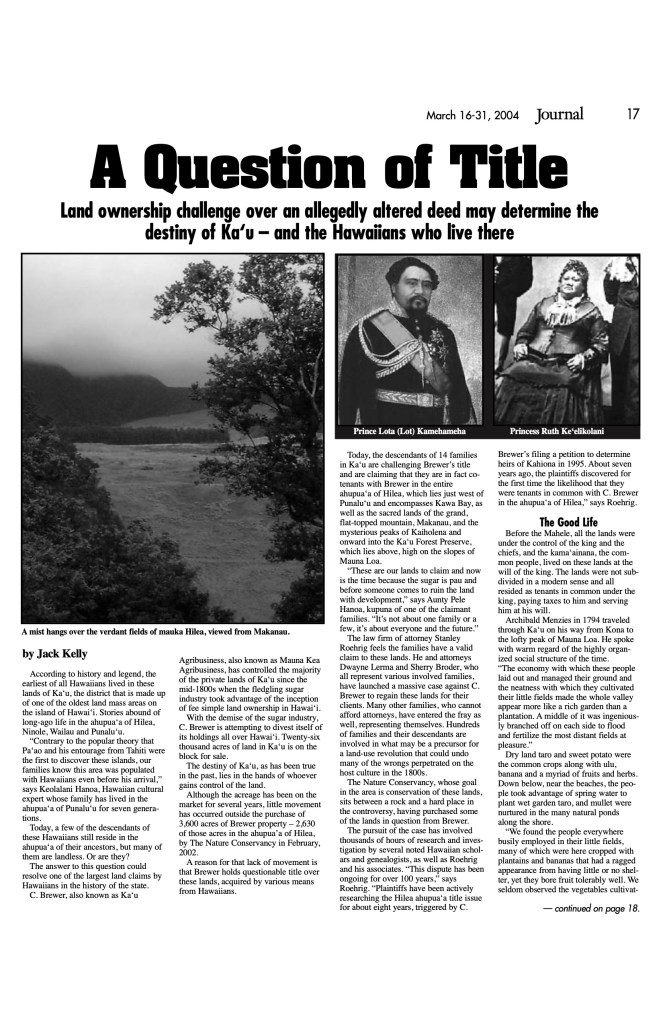 The following story is a modern day tale arising from Hawaii’s long history of land title manipulation aad the adverse possession of lands. Enjoy!