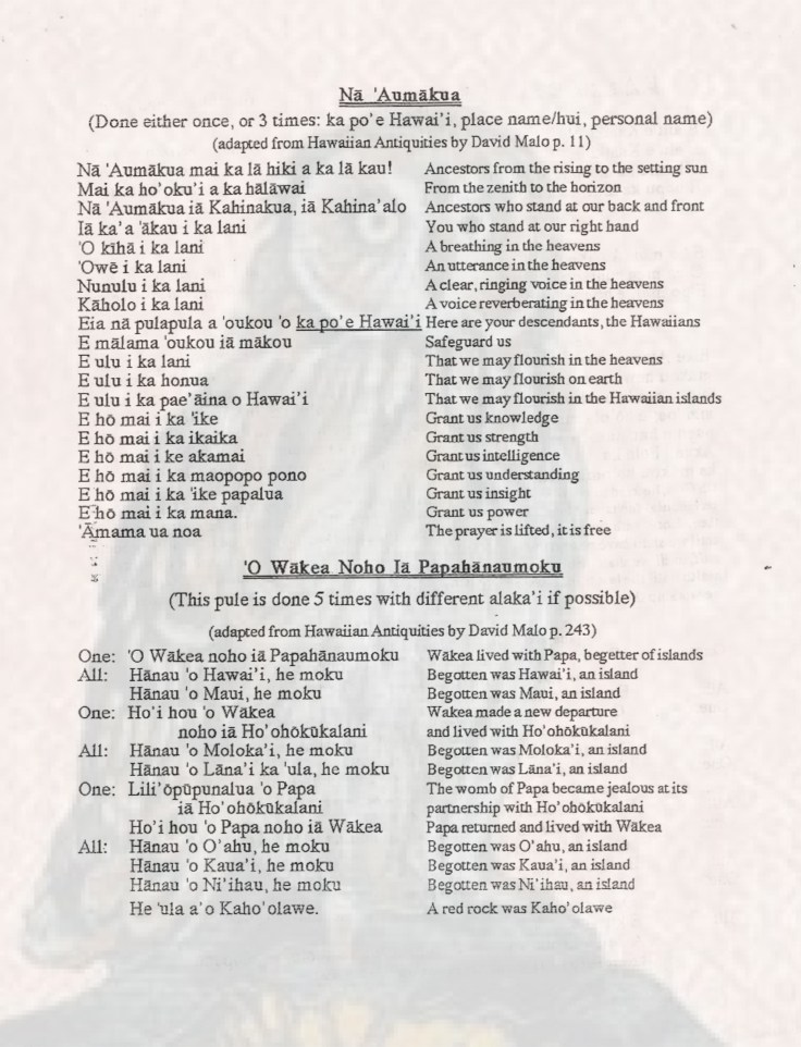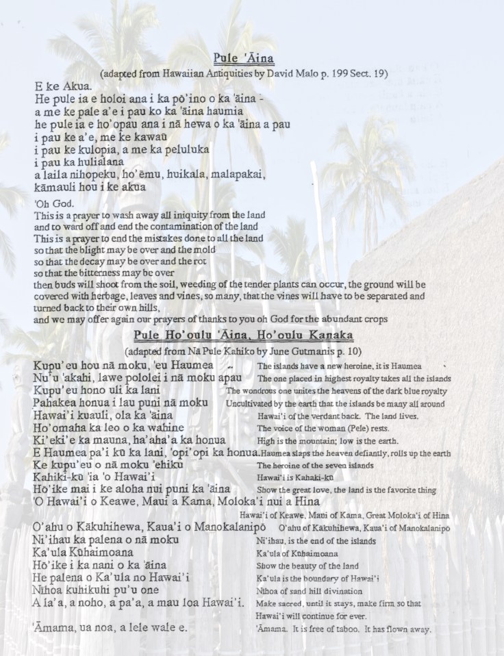 Hawaiians are a prayerful people. Many of the days events are accompanied by prayer and/or chanting. Sunrise, sunset, meals, meetings. Prayer is a reminder that mindful action is the key to one’s maintaining balance in life.